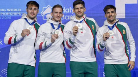 Ezüstérmet nyert a tbiliszi vívó-világbajnokságon a magyar férfi párbajtőrcsapat, amelynek tagja volt a BVSC-Zugló vívója, Andrásfi Tibor is. MTI / Czeglédi Zsolt A...