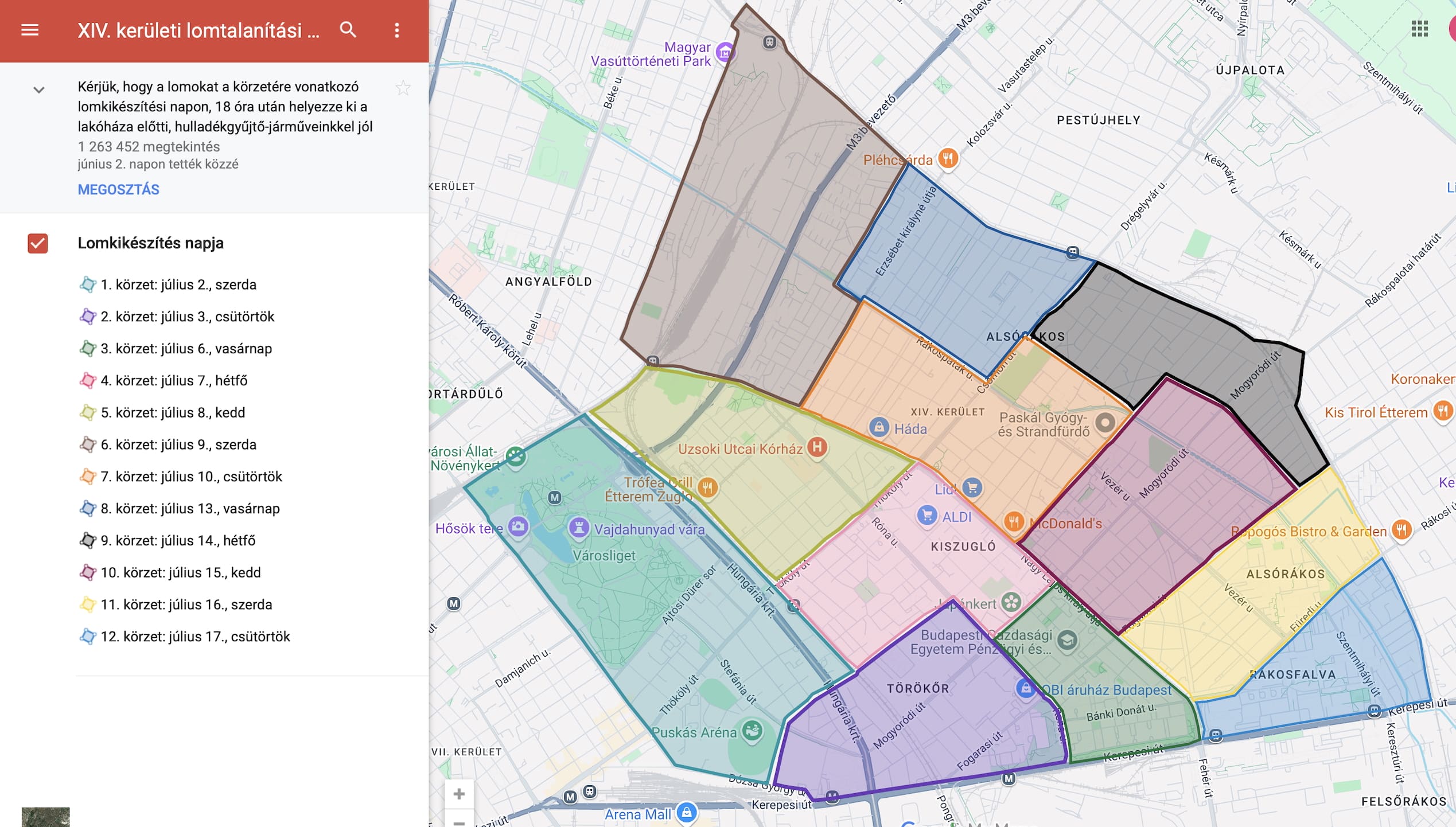 A MOHU 12 körzetre osztotta fel a XIV. kerületi területet, ezzel biztosítva a kellő kapacitást.