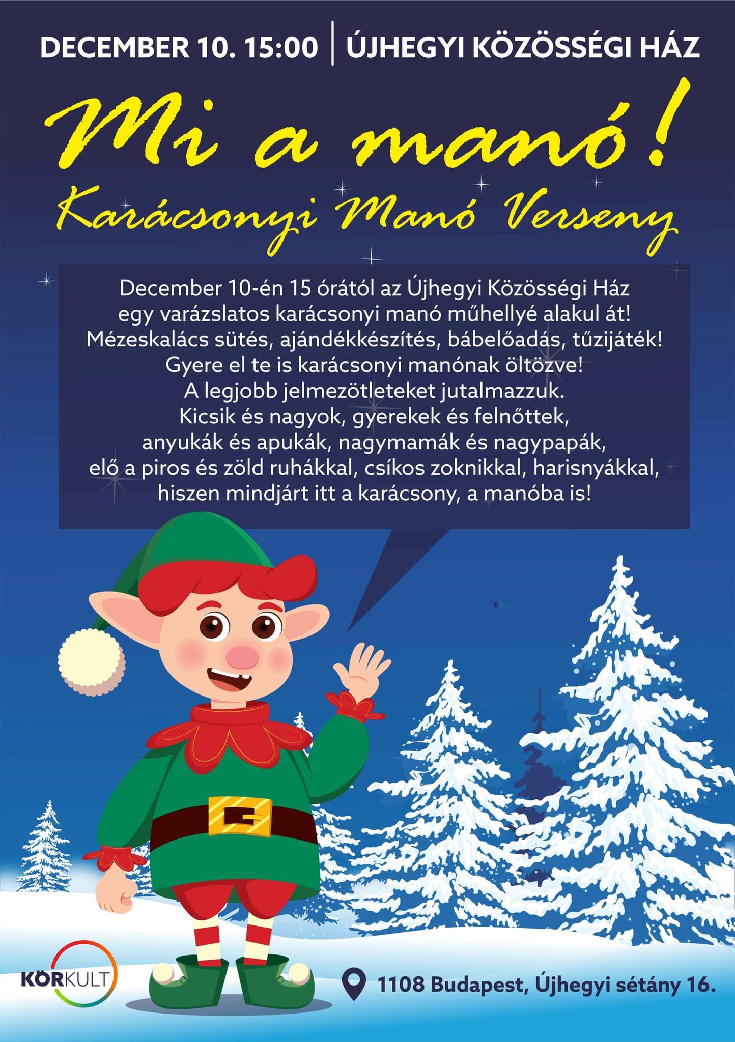 December 10-én, 15 órától az Újhegyi Közösségi Ház egy varázslatos karácsonyi manó műhellyé alakul át.