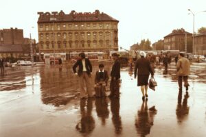 A kép a Cséplő Gyuri című film forgatásán készült a Kerepesi út – Hungária körút kereszteződésénél.